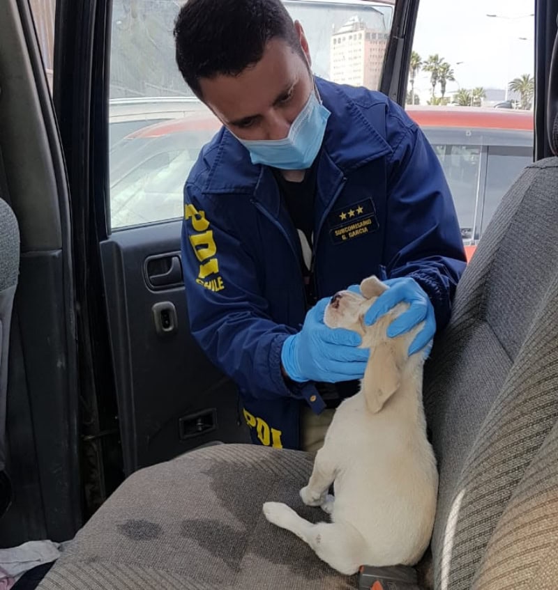Detectives de Bidema Arica rescataron a un cachorro que llevaba horas encerrado dentro de un vehículo estacionado