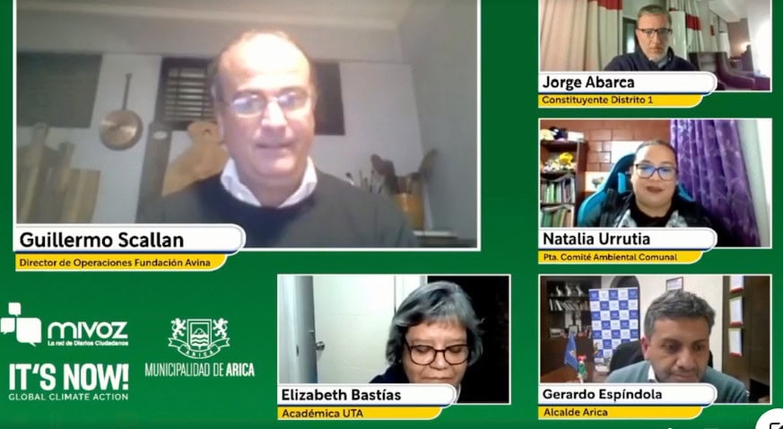 En el espacio virtual conducido por Guillermo Scallan, director de la Fundación Avina, el alcalde Espíndola se comprometió a hacer todo lo humanamente posible para impedir que Arica vuelva a ser una zona de sacrificio; romper la matriz energética en Chile, y recuperar las calles para la gente.