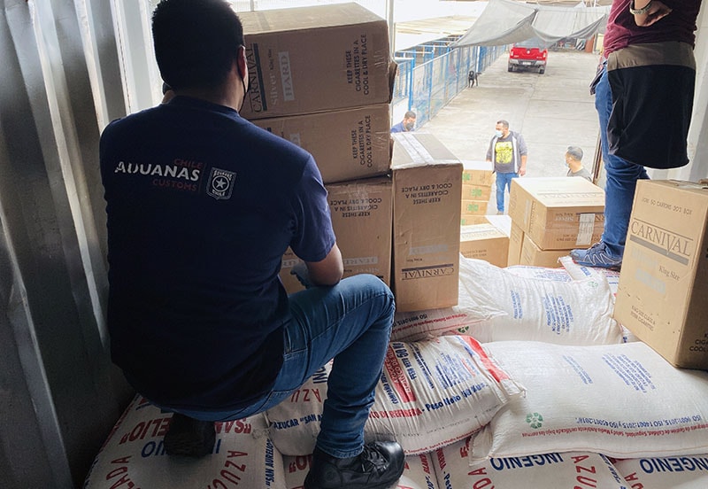 Fiscalizadores del Servicio Nacional de Aduanas de Chile, en coordinación con la Aduana Boliviana, interceptaron un camión con 117 mil cajetillas de cigarrillos de contrabando en el complejo fronterizo de Chungará. El vehículo viajaba en tránsito a Colombia con una carga de azúcar y es el cuarto caso del mismo tipo registrado durante este año.