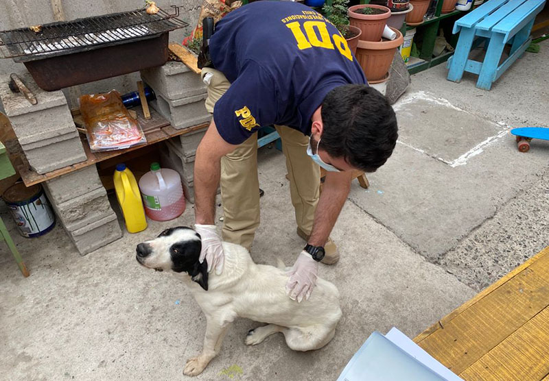 Tras la revisión efectuada por el oficial policial a cargo, quien además es médico veterinario de esta brigada especializada, se pudo determinar que el can se encontraba con desnutrición, con una infección gastrointestinal y una lesión en la columna no tratada, por lo que el responsable de la mascota fue detenido por el delito flagrante de maltrato animal contemplado en el Artículo 291 bis del Código Penal.