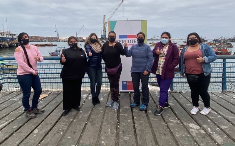 El Director Regional de Sercotec, junto a la Gerenta de Programas, Marilyn Masbermat y la presidenta de la Cooperativa Pesca Mujeres de la pesca artesanal y borde costero Arica Camarones, Claudia Soto, y sus socias lanzaron el programa “Reactívate Organizaciones Regionales”, subsidio que beneficiará a cerca de 13.000 emprendedores agrupados en 128 asociaciones regionales, y que les permitirá implementar medidas enfocadas en su reactivación y reapertura.