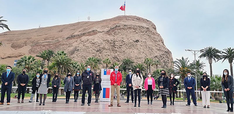Teniendo como telón el Morro de Arica, el Seremi de Justicia y Derechos Humanos, Raúl Gil y el director regional de la Corporación de Asistencia Judicial (CAJTA), Rodrigo Fuentes presentaron a los 16 funcionarios que tendrán la misión de entregar una defensa jurídica integral para niños, niñas y adolescentes.