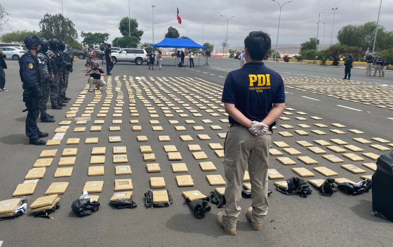 “El origen de esta droga era Colombia, posteriormente era trasladada a Perú y finalmente tenía como destino la Región Metropolitana en nuestro país. La PDI, en lo que va del año, alcanza una incautación de 40 toneladas de droga, cuyo 60 por ciento corresponde a cannabis sativa”, señaló el jefe Nacional Antinarcóticos y Contra el Crimen Organizado (s), prefecto Eduardo Flores.