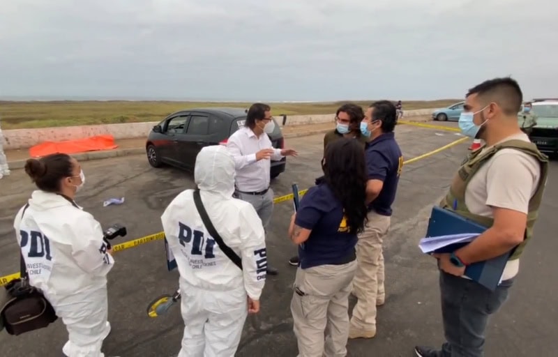 La víctima de nacionalidad peruana perdió la vida en el lugar tras sufrir dos impactos balísticos, hecho que está siendo indagado por la Fiscalía local junto a este equipo especial conformado por la PDI y Carabineros.