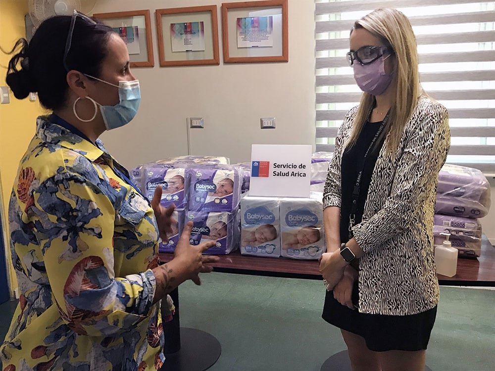 La secretaría regional ministerial (SEREMI) de Desarrollo Social y Familia de Arica y Parinacota entregó 28 paquetes de pañales para recién nacidos y bebés para las unidades de neonatología, pediatría y maternidad del Hospital Regional de Arica Dr. Juan Noé con el fin de apoyar a las madres y familias migrantes en situación de vulnerabilidad y que, muchas veces, no cuentan con recursos para comprar estos implementos.