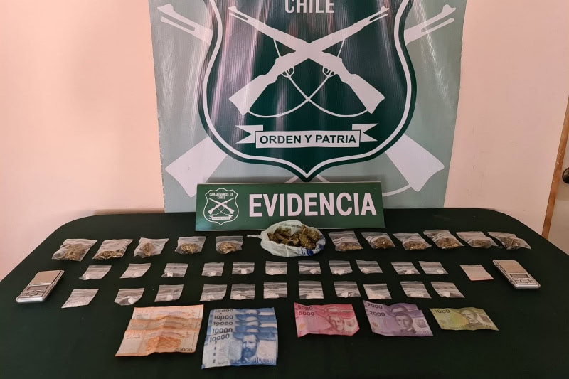 Al interior de los domicilios, los sujetos, ambos de 20 años, fueron sorprendidos con 180 gramos de Marihuana, 38 gramos 700 milígramos de Clorhidrato de Cocaína, 600 milígramos de Ketamina, $125.000 en dinero en efectivo y 2 pesas digitales para la dosificación de la droga, sustancias que arrojaron 2.200 dosis retiradas de circulación, informó el jefe del O.S.7 Arica, teniente coronel Aldo Pellegri Romero.
