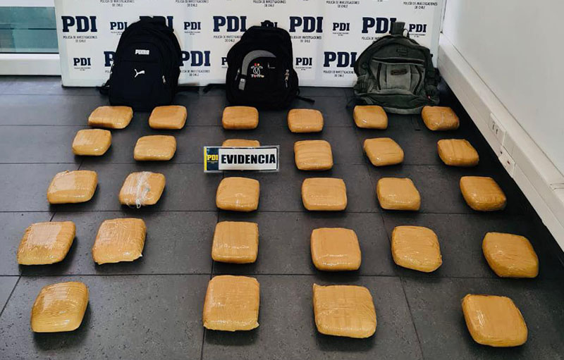Mediante la alerta por hallazgo de droga entregada por detectives del equipo de frontera de la Brigada Antinarcóticos y contra el Crimen Organizado (Brianco) en coordinación con sus pares de la Prefectura de Migraciones y Policía Internacional apostados en el lugar y personal del Ejército de Chile, fue posible la ubicación de más de 29 kilos de droga, que desconocidos dejaron abandonada en la frontera entre Chile y Bolivia.