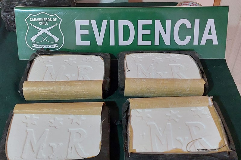 Cocaína marcada con una leyenda particular, característica de alguna organización criminal, fue incautada luego de un operativo conjunto de Carabineros del O.S.7 Arica y personal del Ejército en la Frontera.