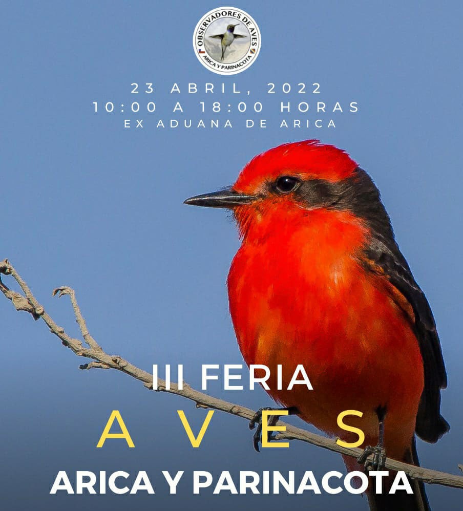 Durante la “3ª Feria de Aves de Arica y Parinacota”, organizada por la Agrupación de Observadores de Aves con el financiamiento del Gobierno Regional y Consejo Regional. Se habilitará el sábado en plaza Baquedano.
