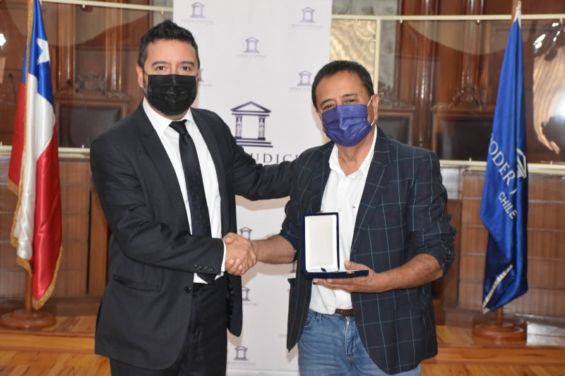 En la ceremonia, que se realizó de forma presencial, el presidente de la Corte de Apelaciones, José Delgado Ahumada, entregó a Barrios Alday una medalla a nombre del tribunal de alzada por su aporte a las artes y letras de la región y por su trayectoria literaria.