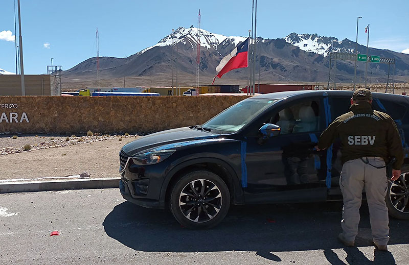 Luego de diversas diligencias por parte del Agregado Policial de Carabineros en Bolivia, Coronel Antonio Alonso Ravest, personal de la SEBV Arica, recuperó en el sector del Complejo fronterizo Chungará, específicamente en el límite fronterizo de Tambo Quemado, un vehículo sustraído desde Santiago en el mes de agosto del año 2020 y que mantenía el encargo vigente por robo.