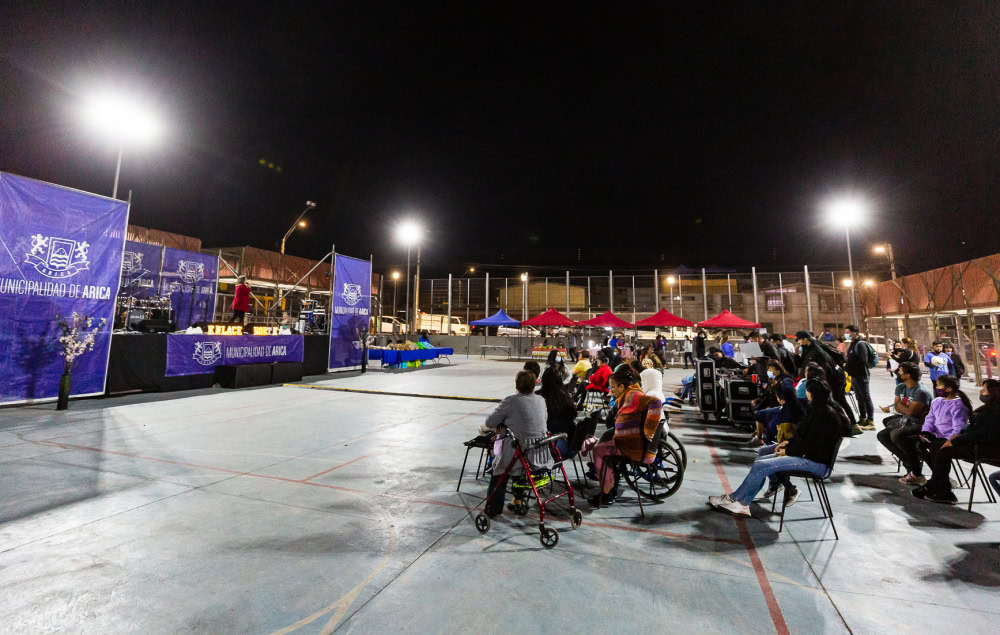Decenas de familias llegaron hasta la cancha de la sede social, para disfrutar de una velada pensada en las mamás del sector norte de Arica.