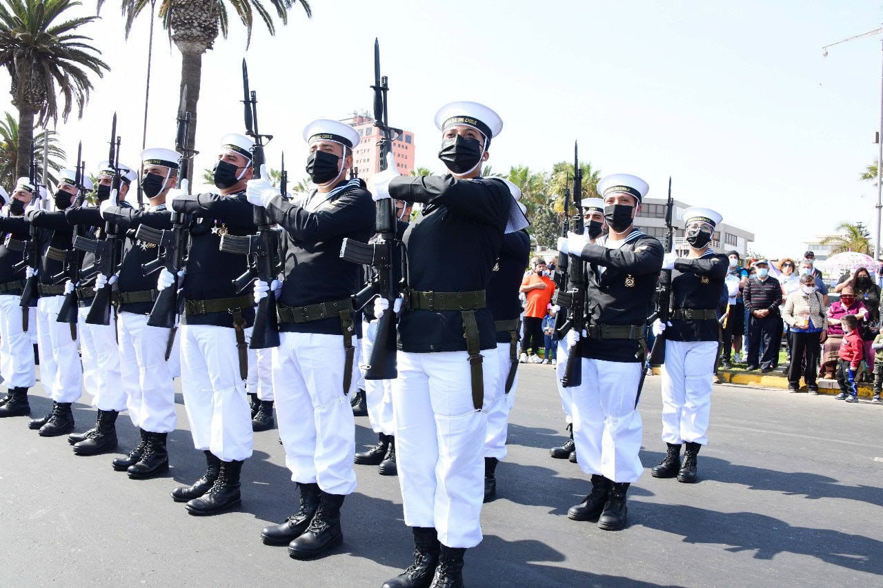 En el Monumento a Arturo Prat se realizó el Desfile por la Conmemoración del Aniversario 143 Combate Naval de Iquique y de las Glorias Navales luego de dos años de suspensión debido a la pandemia de Covid 19.