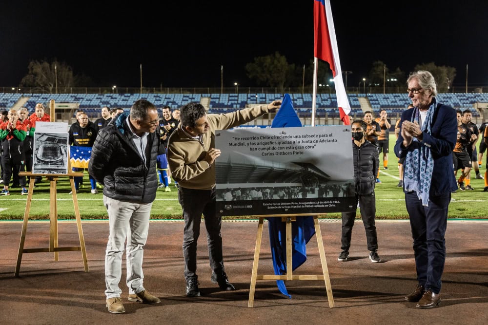 En la oportunidad, el alcalde Gerardo Espíndola descubrió una placa conmemorativa a la hazaña deportiva liderada por Carlos Dittborn, y destacó la confianza que el propio Dittborn y los demás organizadores del mundial, depositaron en Arica y su gente.