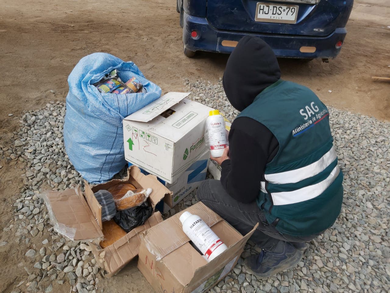 El Equipo de Vigilancia Post Frontera de la Oficina Arica del Servicio Agrícola y Ganadero, en un control carretero en conjunto con Carabineros del Retén de Poconchile, interceptó un furgón con tres cajas de plaguicidas (36 envases) etiqueta roja.