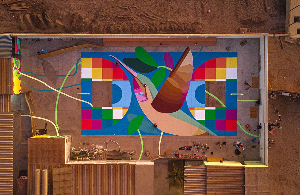 Picaflor de Arica es protagonista en el nuevo mural del proyecto “De cancha en cancha, juntos creamos escuela” de Mineduc.