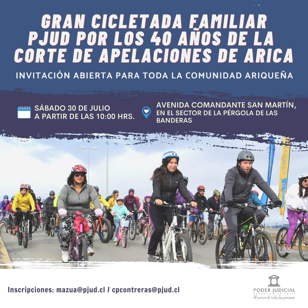 En el marco de la celebración de sus 40 años, la Corte de Apelaciones de Arica invita a toda la comunidad regional a participar en la “Gran cicletada familiar”.