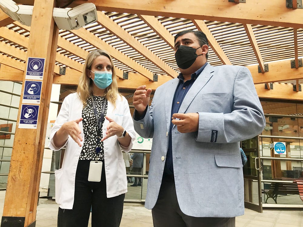 El secretario regional ministerial (SEREMI) de Salud de Arica y Parinacota, Leonardo Valenzuela, visitó el Hospital Regional de Arica Dr. Juan Noé para ver, en terreno, la situación del establecimiento ante el aumento de casos de covid-19 y, junto a la subdirectora de gestión asistencial del Servicio de Salud Arica (SSA), doctora Bernardita Coublé, hizo un llamado a vacunarse, testearse y a cumplir con el aislamiento en caso de resultar positivos.