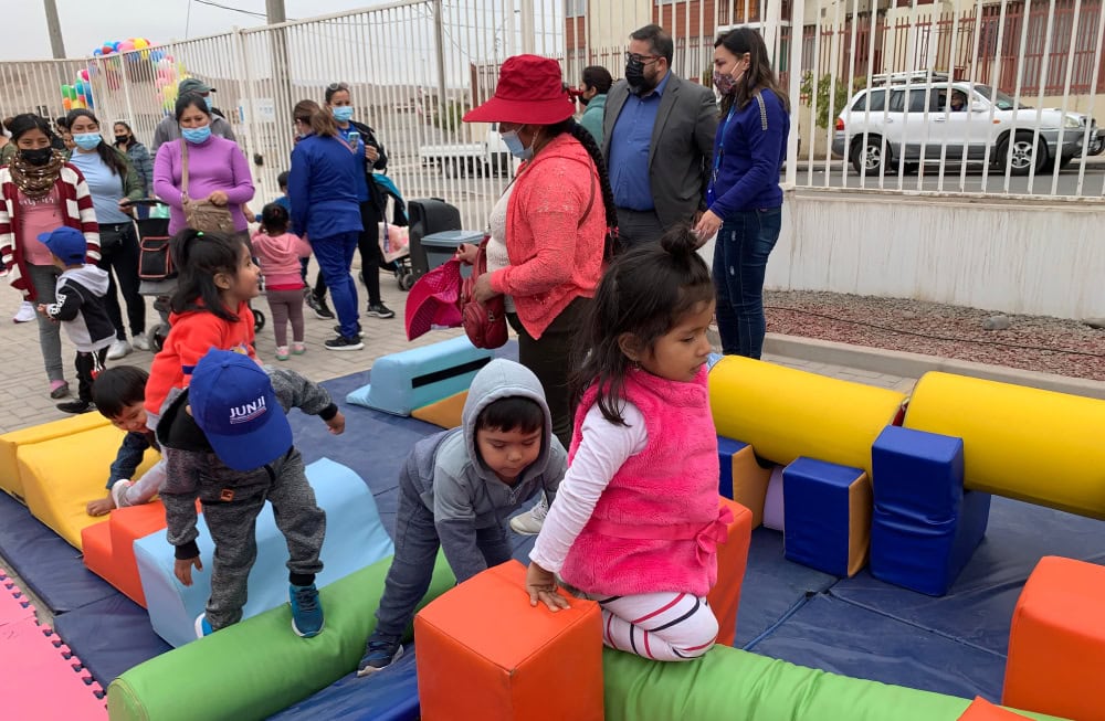 La recreativa jornada incluyó implementación facilitada por el IND como una pista inflable, camas elásticas pequeñas y un circuito de psicomotricidad, junto a otros materiales de Junji, en los cuales los párvulos acompañados por sus familias no pararon de correr, saltar y reír.