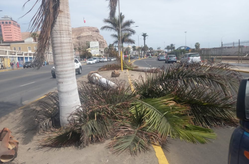 “El martes iniciaremos las acciones legales en contra el conductor que las derribó. Las palmeras chicas cuestan dos millones de pesos, pero estas son mucho más grandes por lo que tienen un valor más elevado”, precisó Gerardo Espíndola Rojas, alcalde de Arica.