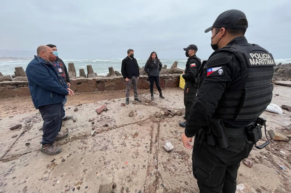 El alcalde de Arica Gerardo Espíndola Rojas, junto a la Corporación Municipal Costa Chinchorro y la Armada de Chile, realizaron un recorrido por los sectores que resultaron dañados por el efecto de las marejadas anormales que afectan al borde costero sur de la comuna.