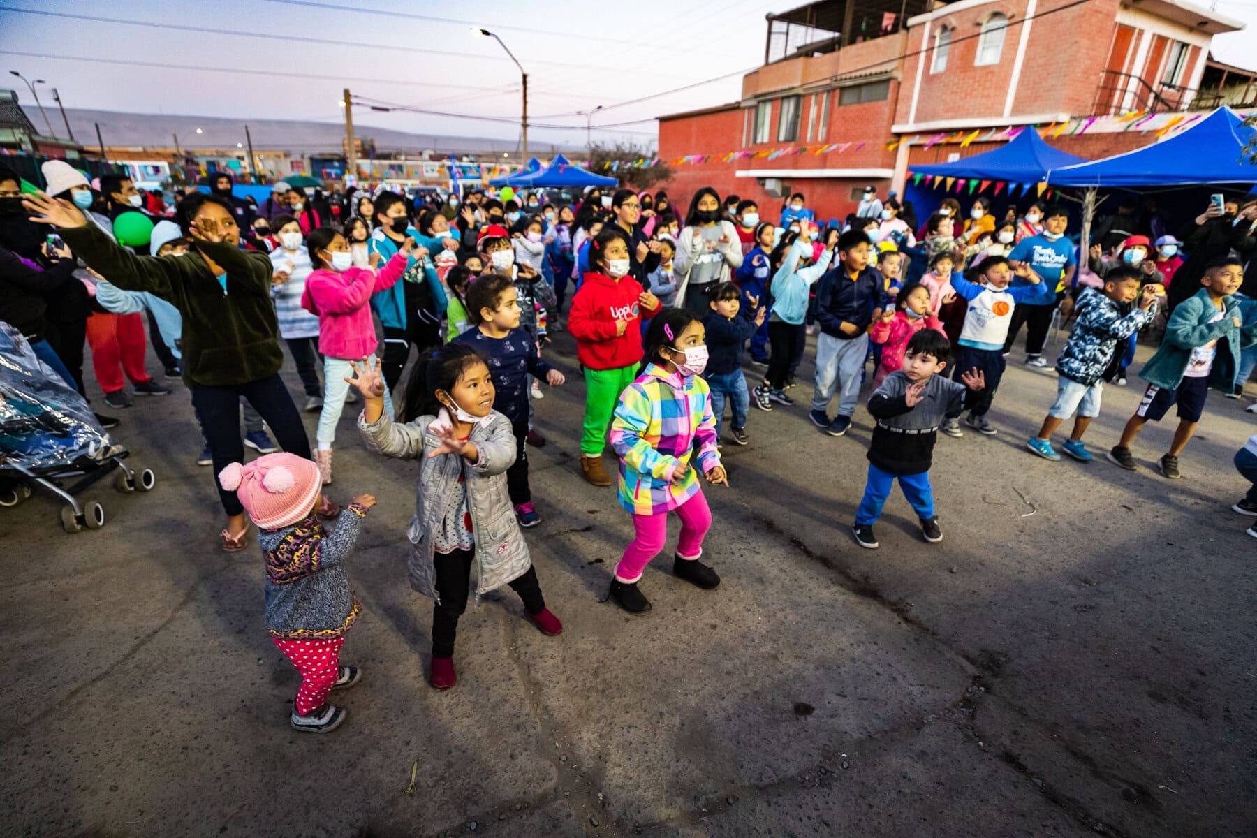 Las caritas felices de los niños y niñas de la población “Nueva Esperanza”, inundaron la espectacular Fiesta Colores organizada por la gestión del alcalde Espíndola. Al ritmo de las y los profes del Departamento de Deportes y de la Oficina Comunal de la Infancia, niños y niñas de todas las edades, bailaron, rieron, jugaron y ganaron premios en el sector del Terminal Asoagro, salida sur de Arica.