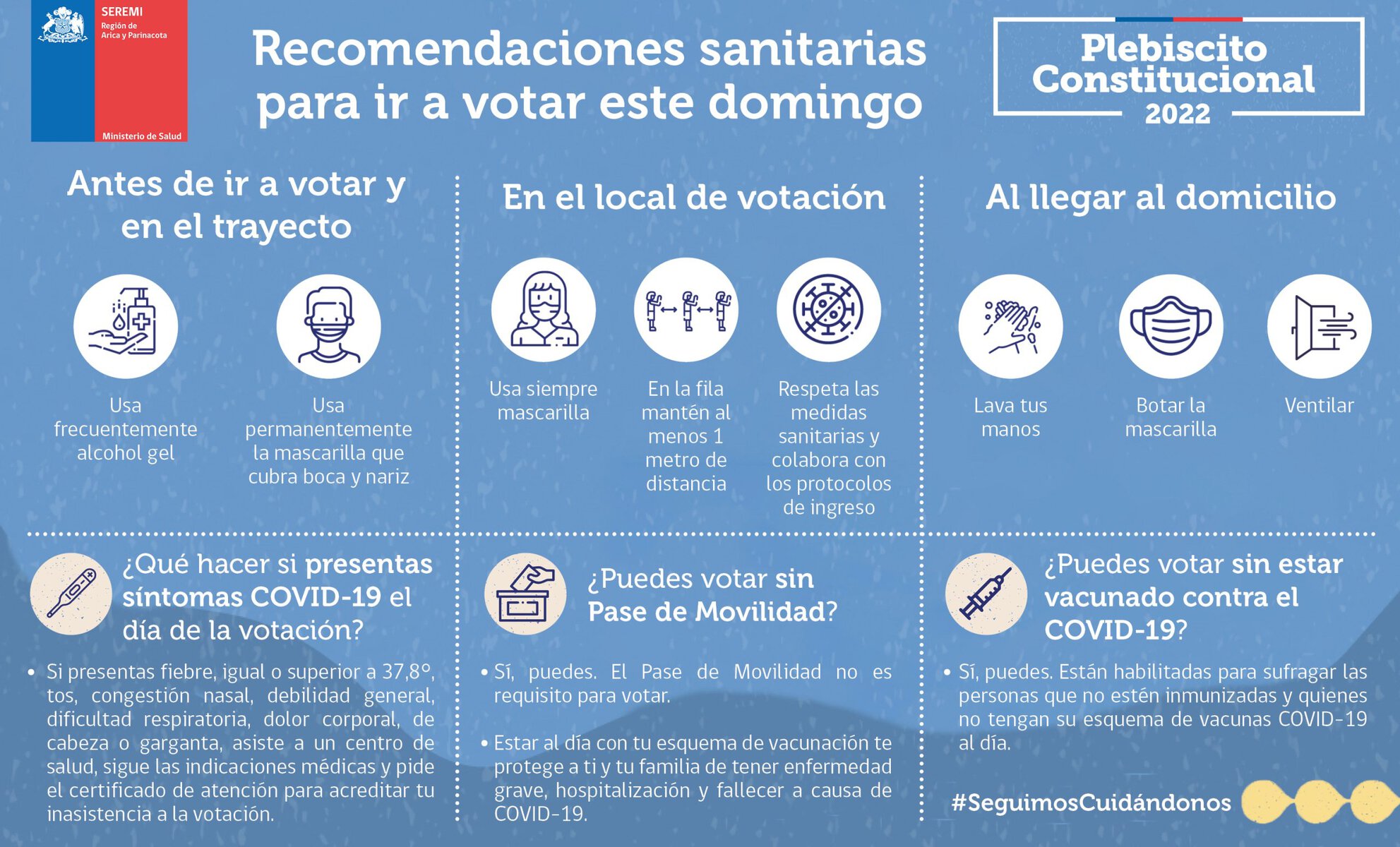 Ad portas de vivir una nueva jornada de votación este domingo 4 de septiembre, en el marco del plebiscito constitucional de salida, el seremi de Salud de Arica y Parinacota, Leonardo Valenzuela Atenas, entregó una serie recomendaciones para enfrentar un proceso eleccionario de forma segura.