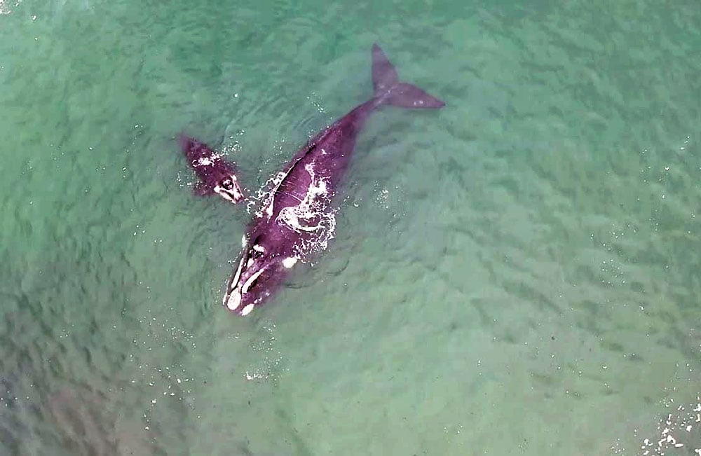 Mediante patrullaje de observación y fiscalización en el sector costero sur de la Bahía de Arica, personal de SERNAPESCA y Capitanía de Puerto de Arica corroboró a bordo de la lancha patrullera marítima LPM-4404, la existencia de una ballena franca austral o Eubalaena Australis ejemplar adulto junto a su cría, quienes permanecían cercana a la costa.
