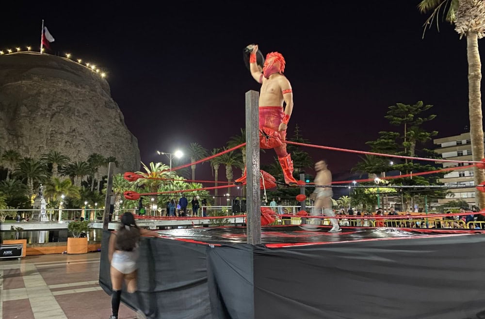 Más de 400 personas amantes de la Lucha Libre llegaron hasta el Parque Vicuña Mackenna para disfrutar del Campeonato Internacional de Lucha Libre, velada organizada por la Municipalidad de Arica junto a la agrupación de Lucha Libre de Arica.