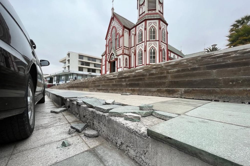 Tan solo 9 meses se mantuvo intacta la reparación de los peldaños en las gradas de la Catedral San Marcos, trabajos que fueron realizados por la Unidad de Mantención de la Dirección de Medio Ambiente Aseo y Ornato (Dimao), para reparar el pésimo estado en el que se encontraban producto de los automóviles que se estacionan en el lugar.