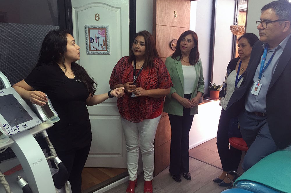 La actividad fue liderada por el presidente del Comité Resolutivo del DFL-15, el seremi de Economía, Fomento y Turismo, José Zúñiga Verdugo; las directoras regionales de SernamEG y Prodemu; la ejecutiva Corfo, María Angélica Ramírez; y las profesionales y trabajadoras del centro estético que se benefició del proceso 2022.