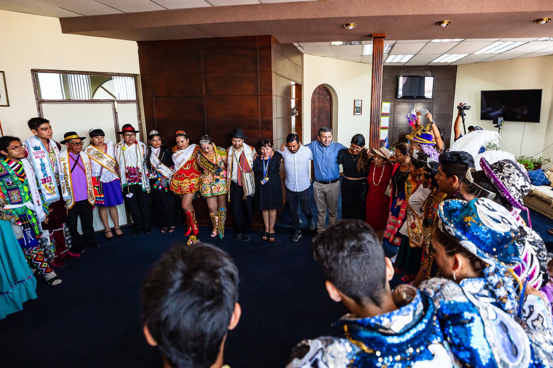 Desde su oficina y acompañado de más de una veintena de bailarines, el alcalde Espíndola invitó a toda la comunidad ariqueña, a los turistas nacionales y extranjeros a sumarse a la gran fiesta de nuestra región, que destaca por ser un símbolo de la integración latinoamericana que fluye de manera natural en el territorio.