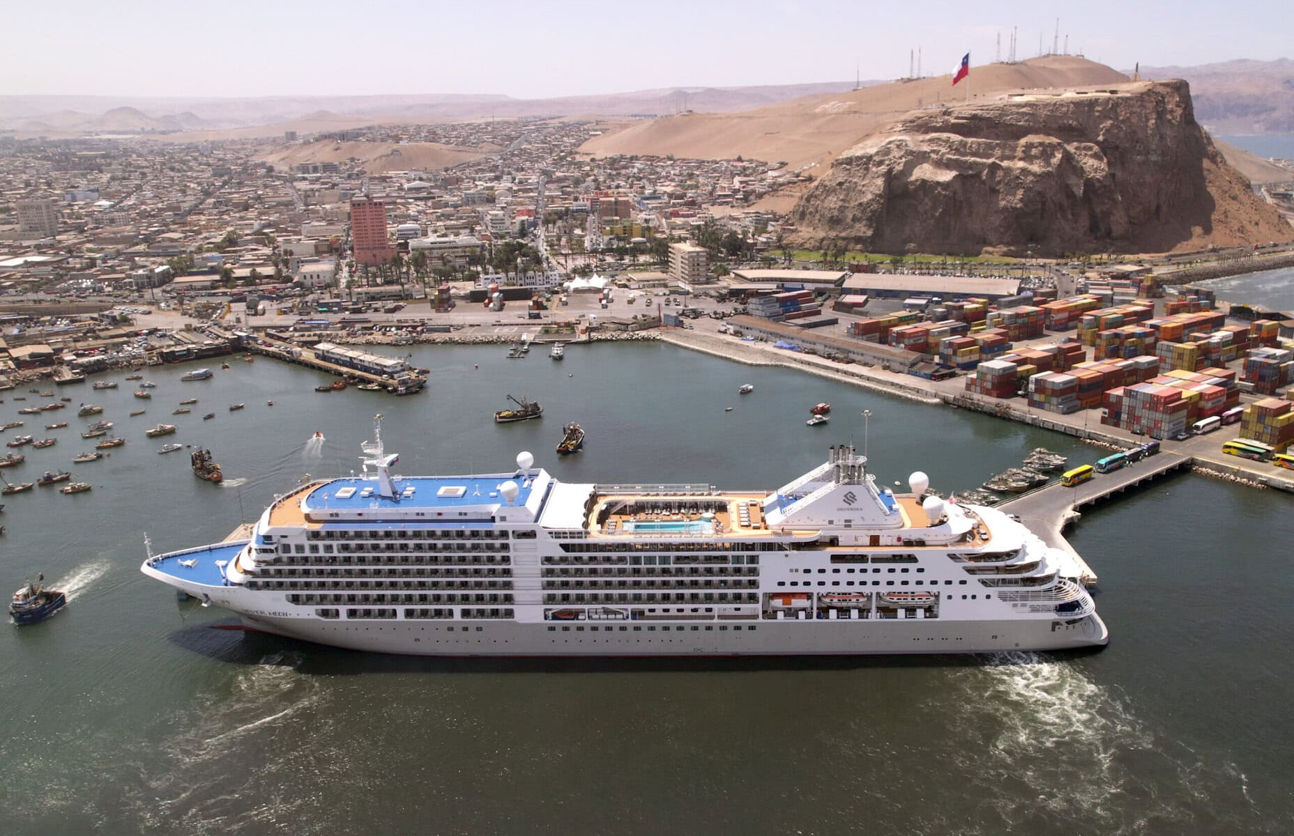 Alrededor de 916 pasajeros recaló el crucero “Ms. Silver Moon” en el Puerto de Arica, anticipando en 24 horas su llegada al Terminal local, luego que no pudiera continuar con su itinerario normal que consideraba el Puerto de Pisco, Perú.