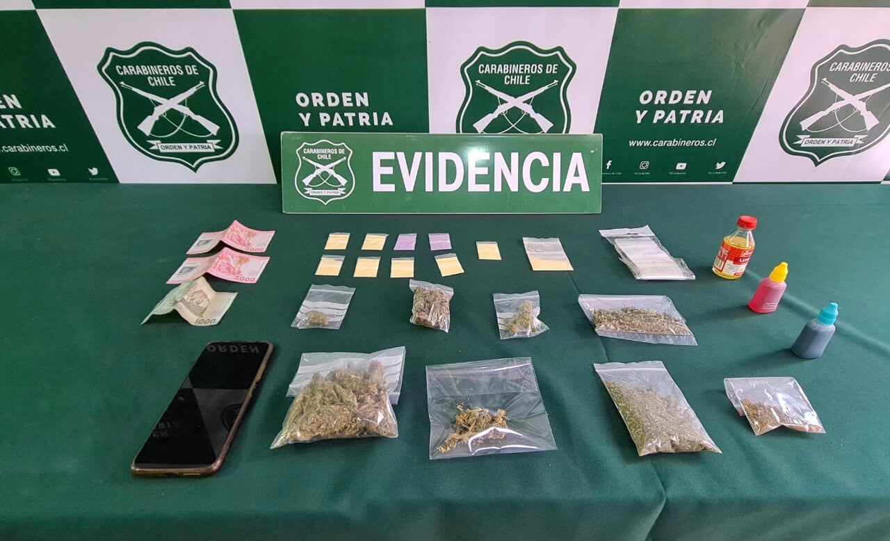Manipulando droga al interior de un vehículo, fueron sorprendidos dos individuos por Carabineros de la Sección O.S.7, procedimiento que finalizó con el allanamiento de un inmueble y la incautación de Marihuana y Ketamina en pequeñas cantidades y diversas especies asociadas al ilícito.