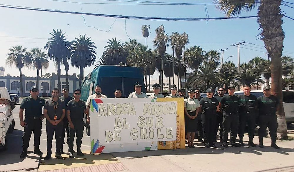 El alcaide (s) Complejo Penitenciario de Arica, teniente coronel Alex Meza Domínguez manifestó que esta actividad nació de manera espontánea por la disposición de la población penal y del personal del recinto, “quienes no quisieron quedarse ajenos a colaborar para ir en ayuda de las personas que están sufriendo por los hechos lamentables que ocurren en el sur de Chile. Por eso, se organizó una actividad que consistió en reunir alimentos no perecibles, principalmente en 2.200 botellas con agua (1.6 litros c/u) y 14 mil colaciones consistentes en galletas mini, barra de cereal y jugos individuales”.