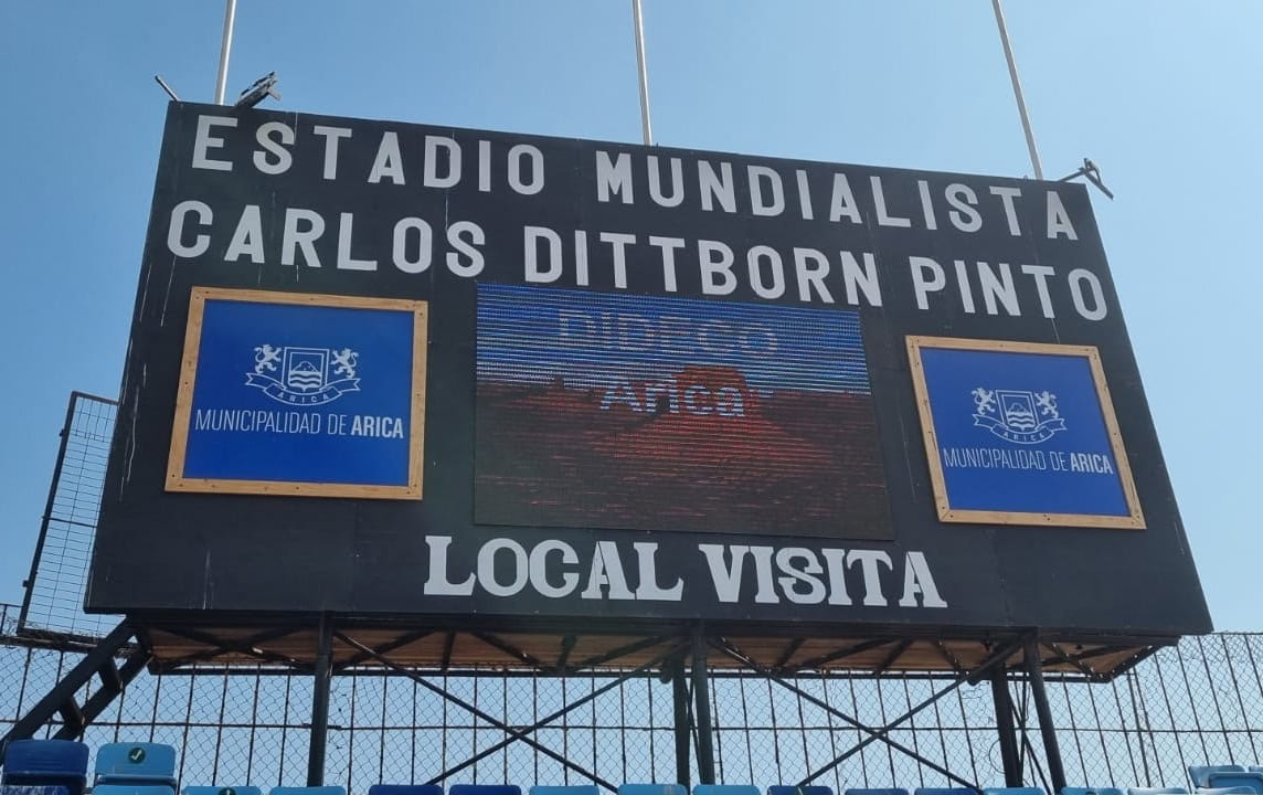 Cabe destacar que la programación de la nueva pantalla del tablero marcador electrónico del estadio “Carlos Dittborn”, fue realizada por la oficina de Recintos Deportivos de la Municipalidad de Arica.
