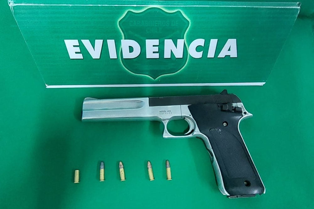 Con la versión de las víctimas, Carabineros, inició la persecución del móvil que mantenía un arma de fuego en su interior, un modelo Demio color blanco, logrando detener a sus ocupantes.