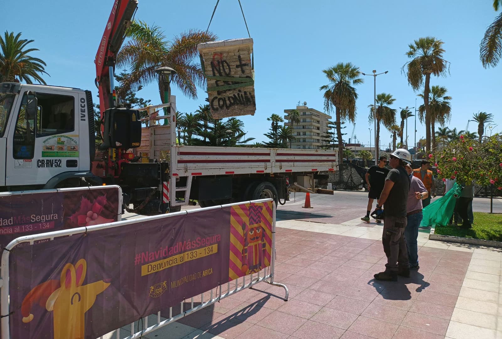 Luego de tres años y medio desde su destrucción, los restos del busto de Cristóbal Colón fueron retirados de la plaza que llevaba su nombre en Arica, trabajos realizados por la Municipalidad de Arica luego de un extenso proceso de estudios y autorizaciones.