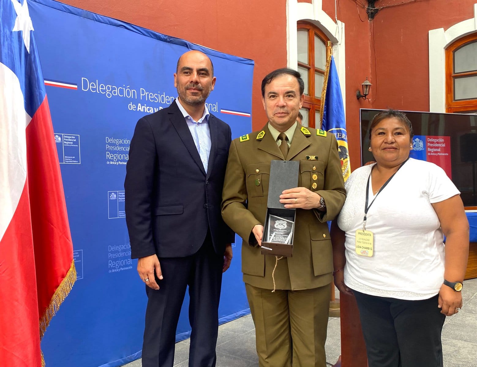 Como forma de agradecer el trabajo articulado de Gobierno con la institución, el Delegado Ricardo Sanzana entregó distinciones al general Iván Monje Neira, jefe de la XV Zona de Carabineros de Arica y Parinacota; al coronel Carlos Maureira Herrera, prefecto de la Prefectura Arica N°1. Así como también, a la Comisaría de Arica, Putre, Chacalluta, Control de Orden Público, subcomisaría Chinchorro, sección Investigación Policial- SIP, modelo de Integración Comunidad MICC Arica, sala de Familia- Violencia Intrafamiliar VIF, sección motos de tránsito y sección Centauro.