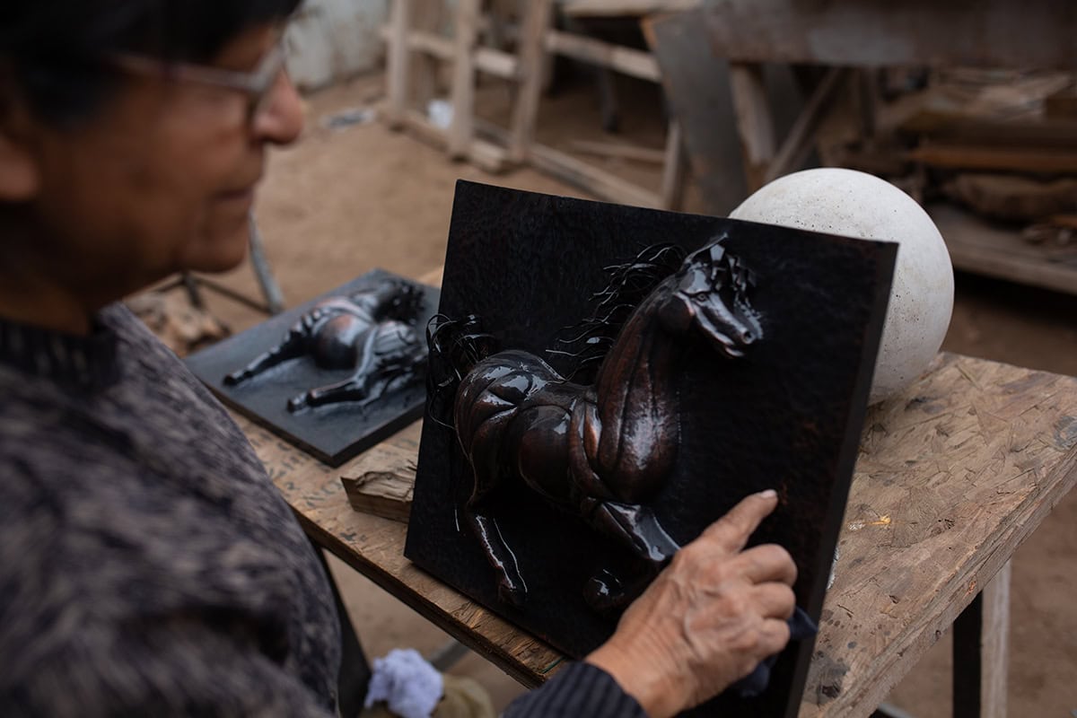 Son más de 40 años los que la escultora, originaria del pueblo de Codpa, Edith Soza Romero ha entregado a las artes. Una vida creando impresionantes obras visuales inspiradas en la región andina, especialmente en el Valle de Codpa de la Comuna de Camarones. Edith Soza es una artífice de comprobable experiencia, siempre con una profunda sensibilidad por el trabajo escultórico en metales a través de la técnica del repujado y cincelado.