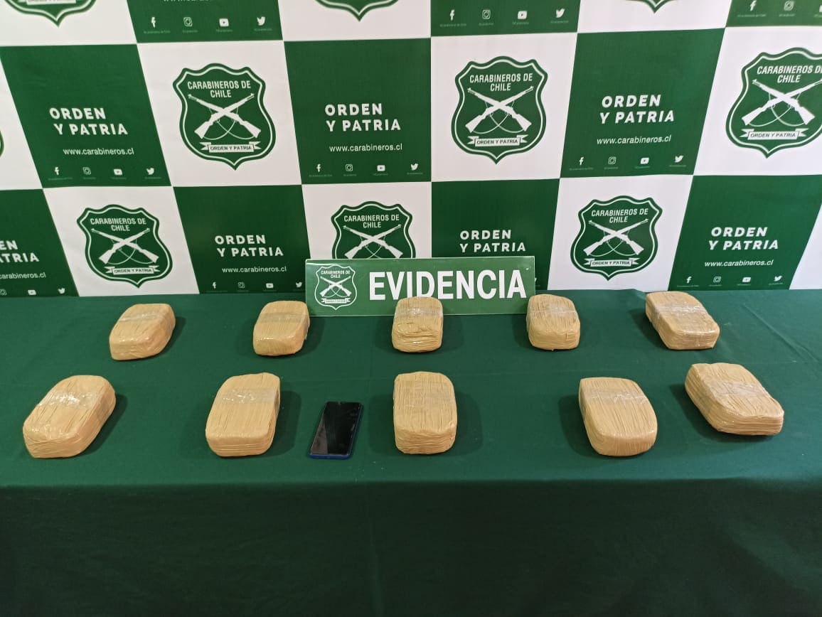 10 kilos 320 gramos de Pasta Base de Cocaína fueron retirados de circulación y se evitó que llegaran a las poblaciones de nuestra región, luego de que Carabineros del OS7 sorprendió a un hombre que intentaba ingresar ilegalmente al país, por un paso no habilitado, cargando la droga al interior de una mochila.