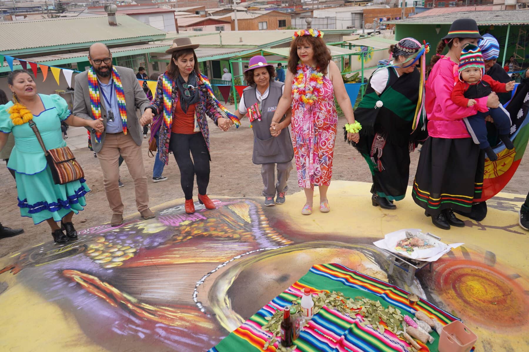 La actividad cultural consideró un colorido festejo que incluyó una cacharpaya amenizada por una banda de bronce, en la que todas y todos danzaron al son de la música. Esto porque los pueblos andinos celebran el solsticio de invierno al amanecer, cuando los rayos del padre sol (Tata Inti) llegan a la madre tierra (Pachamama) para comenzar un nuevo ciclo en la vida de las personas y naturaleza.