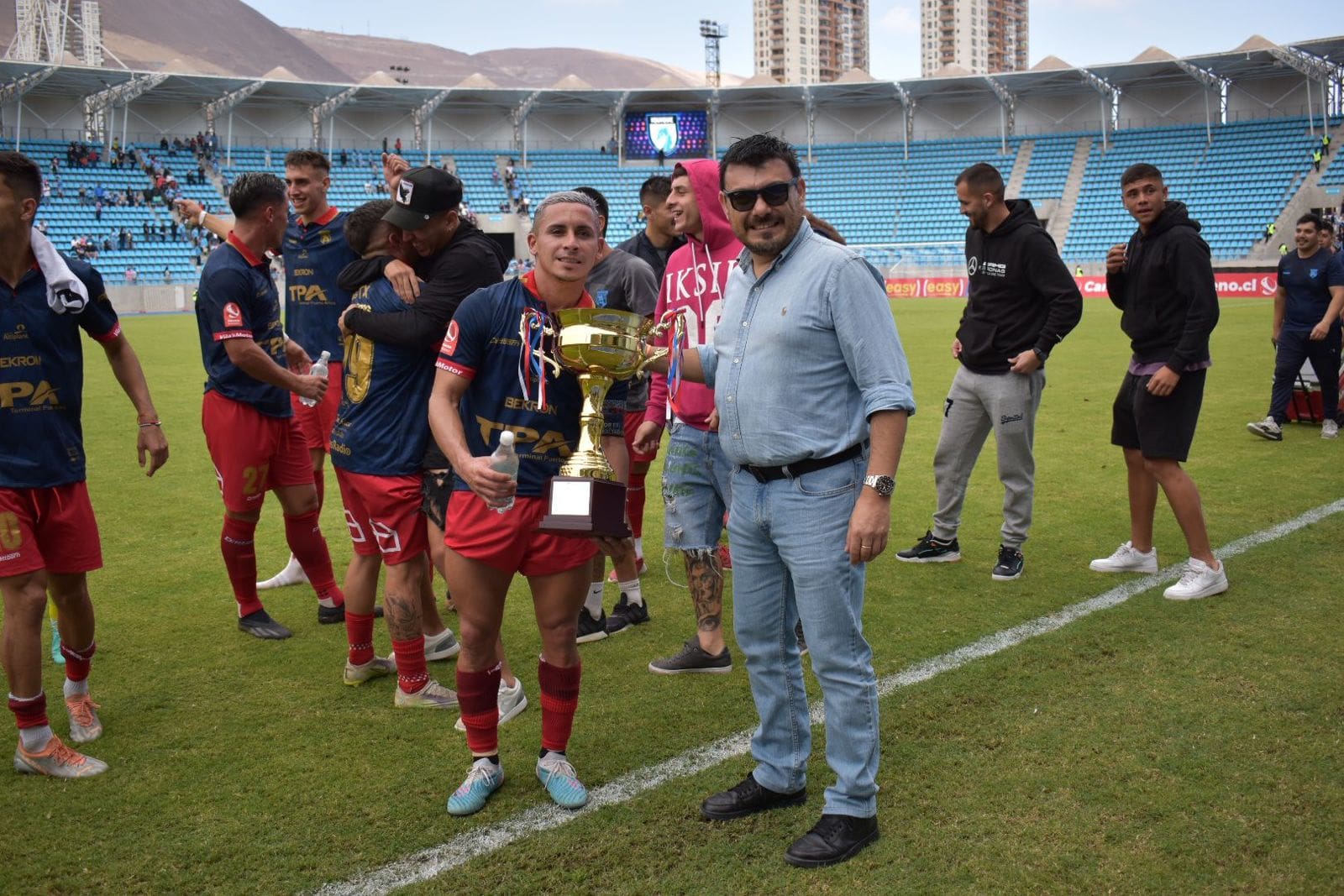Tras el triunfo de San Marcos de Arica, fue el gerente regional de Aguas del Altiplano, Christian Barahona Rubio quien entregó el trofeo a los Bravos, felicitando a los deportistas de ambos equipos y destacando la alegría del público por acompañar en el clásico.