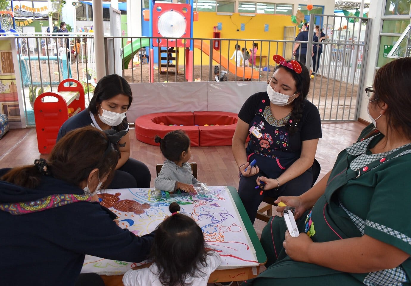Además de un espacio seguro dispuesto por Fundación Integra durante dos semanas, los párvulos disponen de alimentación gratuita, material educativo, transporte y un equipo de educadoras y técnicos en atención de párvulos liderados por la educadora y directora Karla Rozas Vicencio.