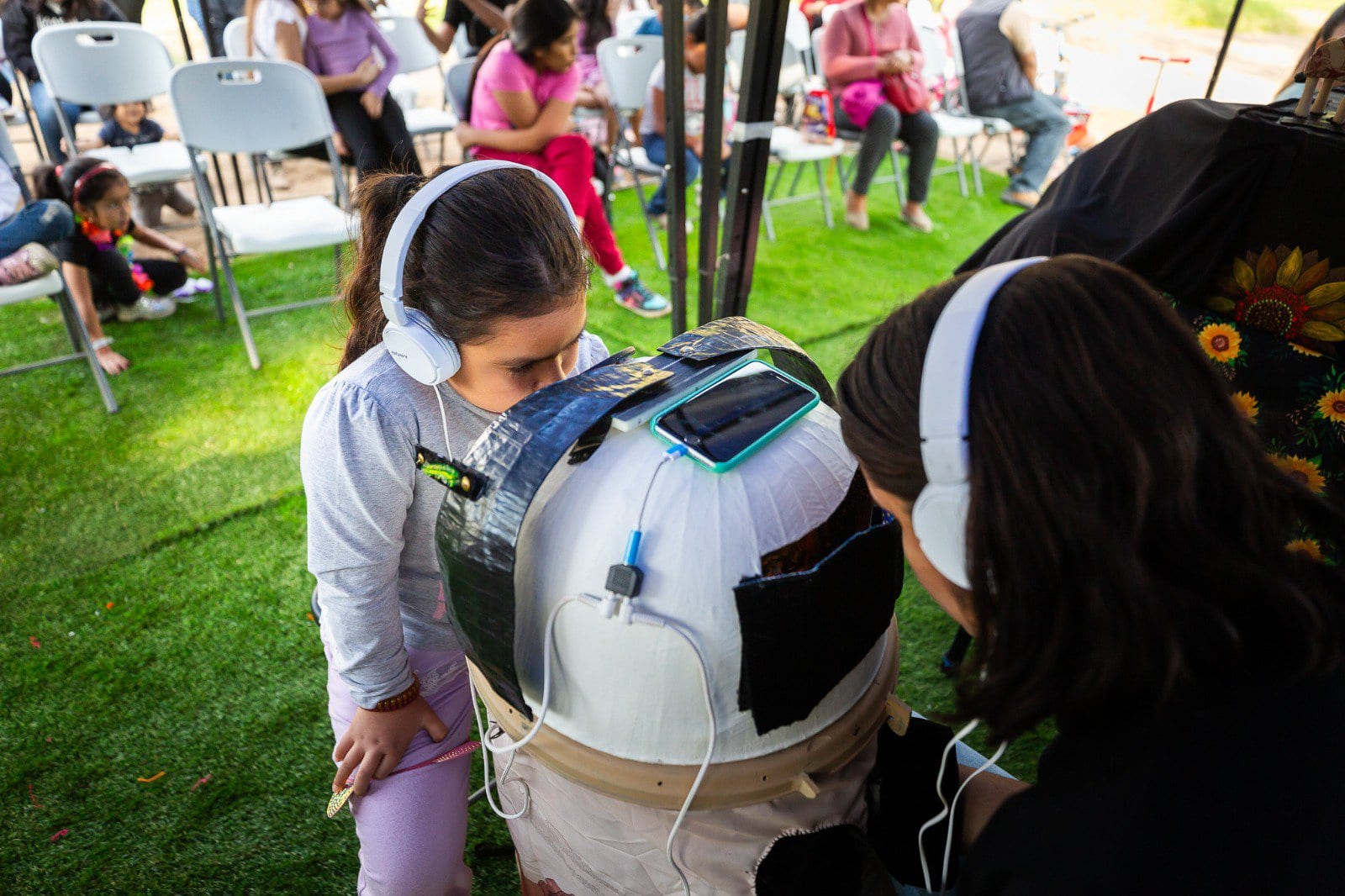 El actor se ubica en el lado opuesto de la caja y pone en escena la obra, manipulando la iluminación, el sonido, utilería, y objetos, llevando a los más peques a un mundo fantástico.
