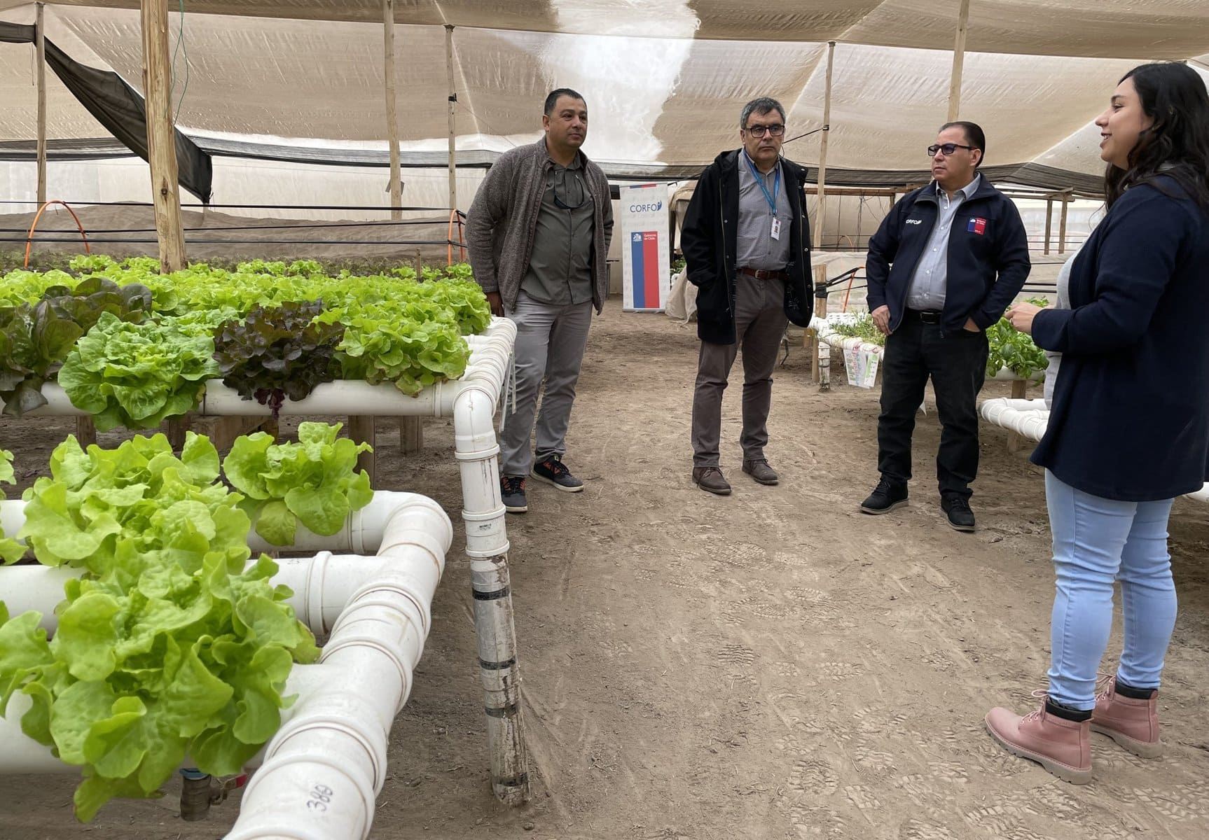 El seremi de Economía, Fomento y Turismo, José Zúñiga, y el director regional (s) de Corfo, Alfredo Cancino, realizaron el lanzamiento de este instrumento durante la visita realizada a Hidroponía Mallkivitor Spa, ubicada en el kilómetro 11 y medio del Valle de Azapa, pyme que durante el 2022 se benefició de este programa que la llevó a certificarse como la primera empresa de Chile en “flores comestibles”.