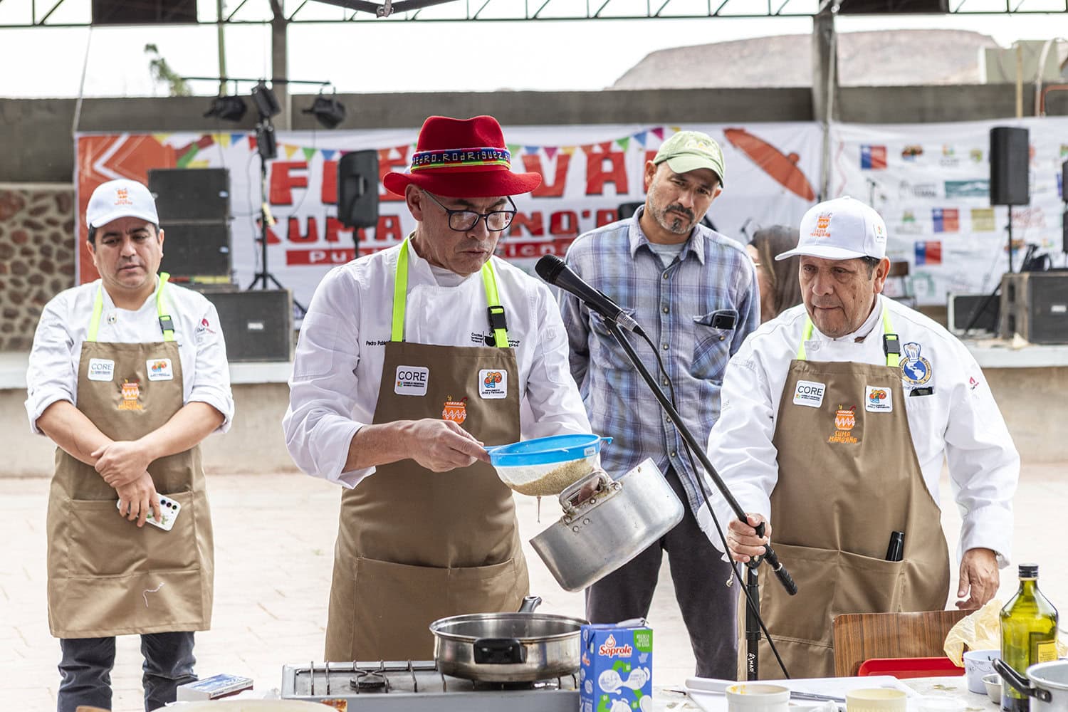 La jornada comenzó con la tradicional phawa, donde participaron el alcalde subrogante de la Municipalidad de Putre, Fabian Hilaja y la concejala de Putre, María Arias, junto con los representantes del Gobierno Regional de Arica y Parinacota, Nelson Campos, supervisor de proyectos y Génesis Morales, coordinadora de cultura; además del gerente de Fundación Altiplano, Álvaro Merino y los chefs invitados.