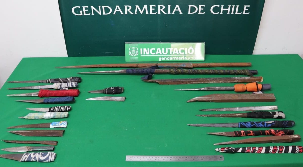 Gendarmería incautó más de 90 armas blancas, licor artesanal y celulares en cárcel de Acha