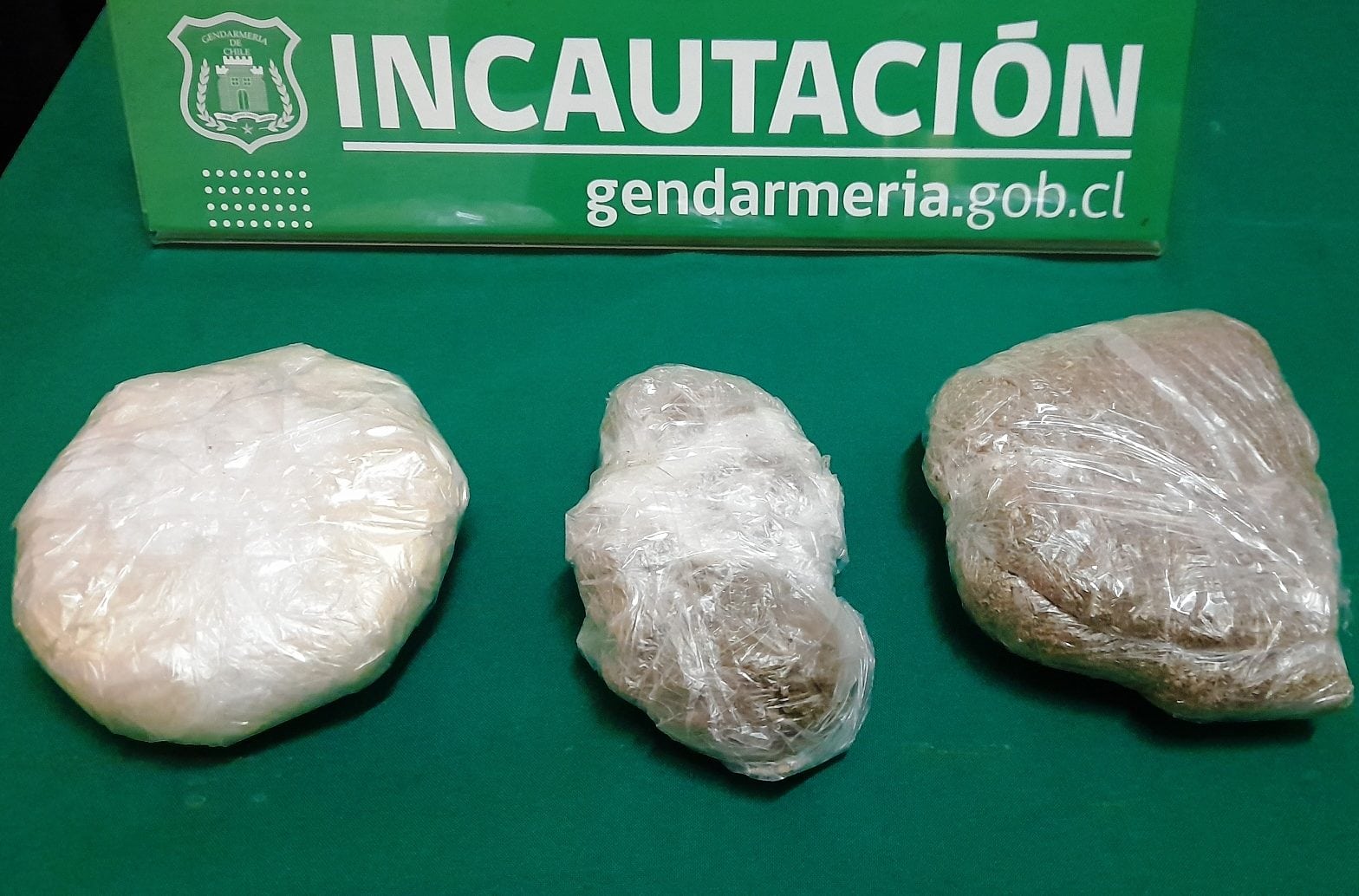Tres envoltorios transparentes con sustancias de color verde y blanco, fueron encontrados por el Gendarme 2° de iniciales C.M.B., quien se desempeña en el Complejo Penitenciario de Arica.