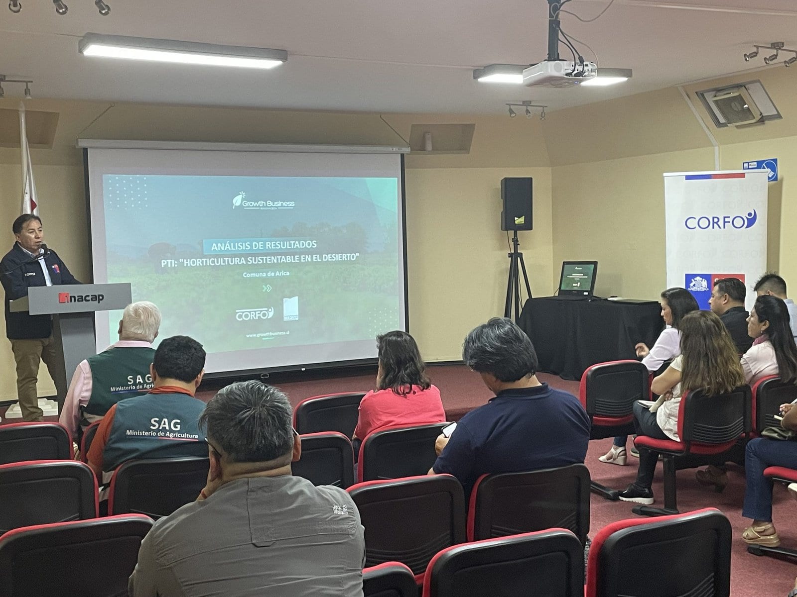 Para presentar este programa, se realizó en el auditorio de Inacap sede Arica una jornada de validación estratégica de levantamiento y priorización de las brechas del sector hortícola, que identificó la consultora Growth Business SPA.